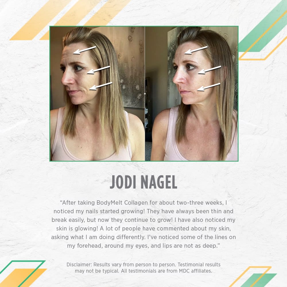 Akár fiatalos megjelenésű bőrre, hajra és körmökre, akár egészséges ízületek támogatására vágyik, a BodyMelt Liquid Collagen Supplement egy hatékony formula, amely kétszeres, sőt háromszoros mennyiségű kollagént tartalmaz a versenytárs termékekhez képest. Tartalmaz még C-vitamint és hialuronsavat (a kollagéntermeléshez nélkülözhetetlen), rezveratrolt és egy hibiszkuszkivonatot, amely klinikailag bizonyítottan csökkenti a ráncok megjelenését.